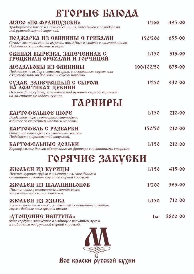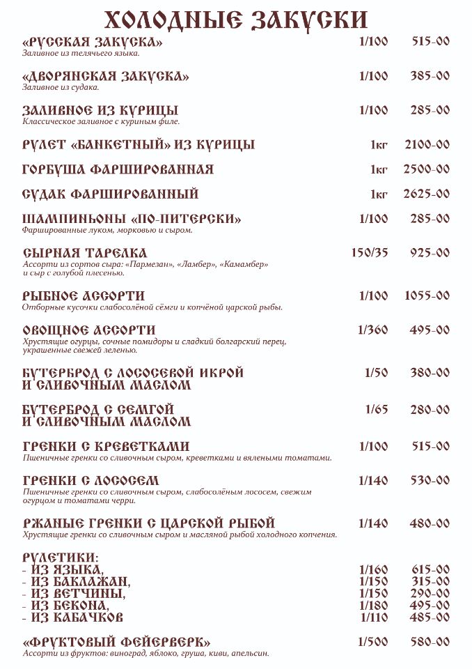 Банкетное меню: